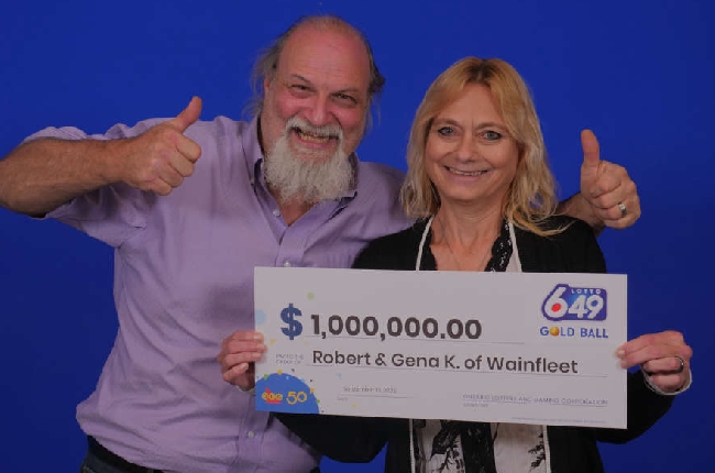 Robert and Gena Kenny of Wainfleet are marking a milestone after winning $1 million in the LOTTO 6/49 Gold Ball Draw on August 16, 2025.