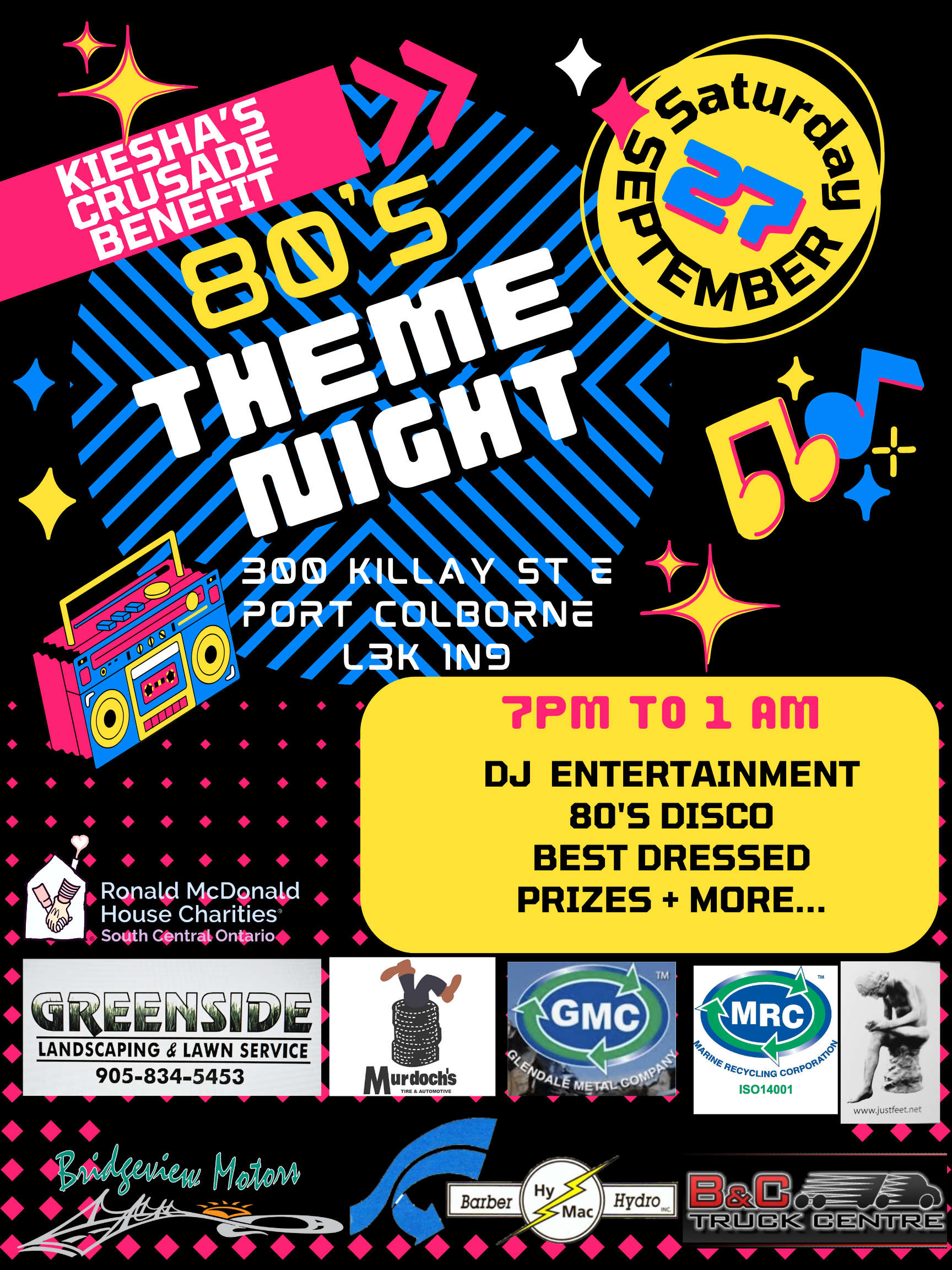 Saturday event is an 80s themed dance with a number of raffle prizes available including helicopter tours, IceDogs and Bulldogs OHL games, and a 65 inch TV up for grabs.